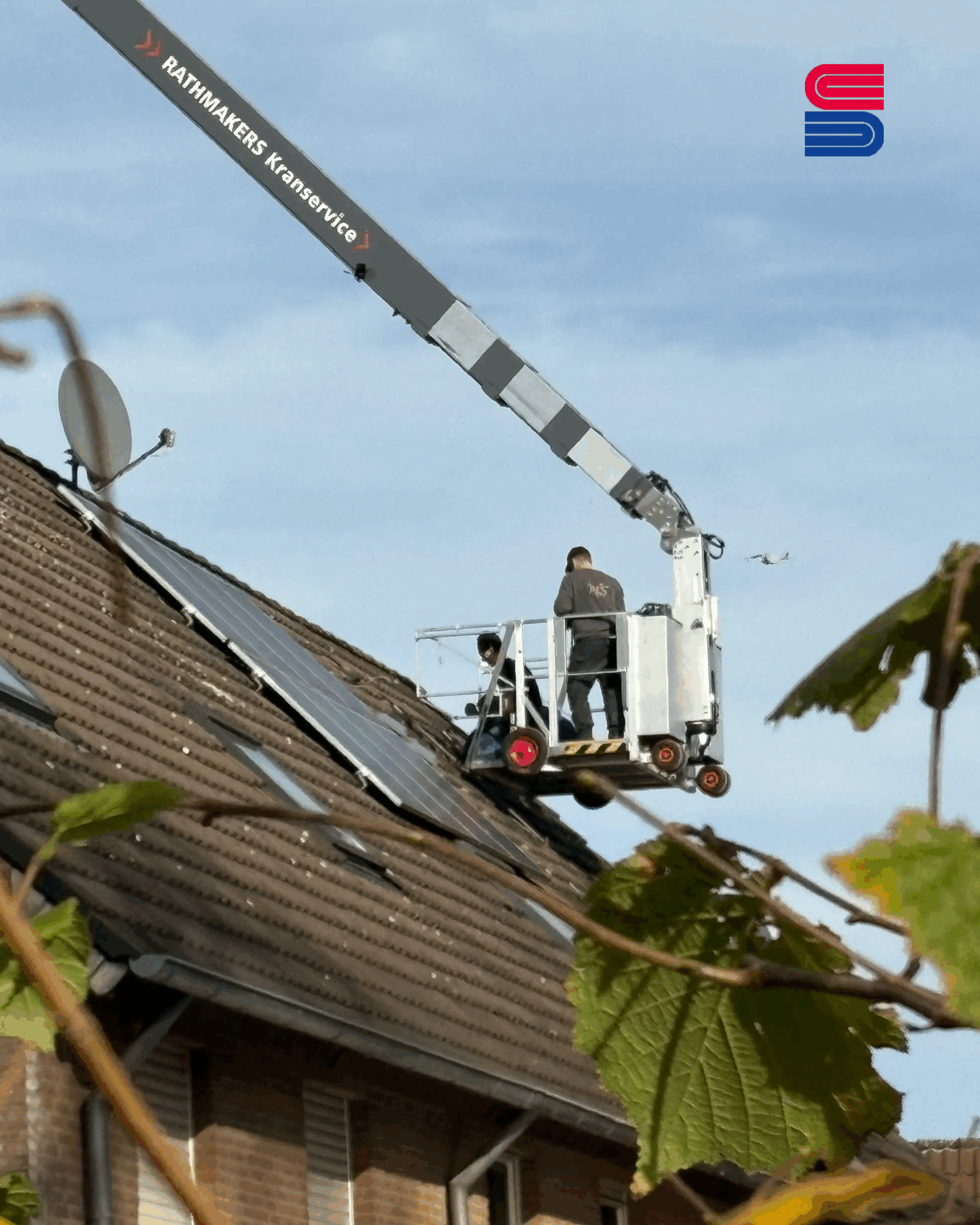 Wir zwängen uns durch die kleinste Luke, steigen Ihnen – wenn nötig – auch aufs Dach und wird’s mal schwer, fahren wir natürlich auch härtere Geschütze auf. Dann kommt größeres Gerät zum Einsatz und Teamarbeit ist gefragt. Genau wie jetzt bei der Demontage von Solarkollektoren und der Aufstellung einer neuen Wärmepumpe. Die Firma RKS Kranservice aus Wachtendonk unterstützte unsere Arbeit dabei mit einem großen Baukran und hievte nicht nur unsere Mitarbeiter, sondern auch Materialien und die neue Wärmepumpe von Stiebel Eltron durch luftige Höhen. Ein großes Dankeschön geht deshalb raus an das Team der Firma RKS für die freundliche Hilfe, den reibungslosen Ablauf und die wunderbar unkomplizierte Zusammenarbeit. Präzise, effizient und nachhaltig – so geht moderner Heizungsbau. Und unser Kunde? Freut sich jetzt über wohlige Wärme mit Zukunft.